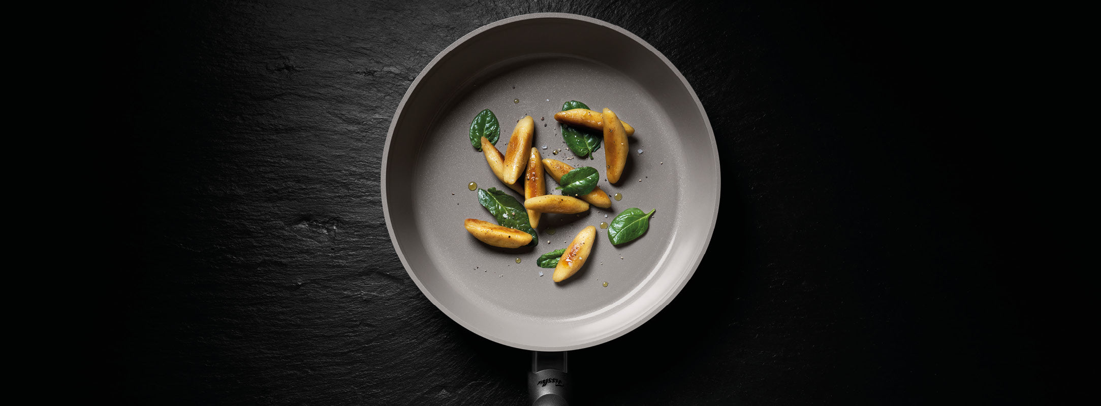 Ceramic coated aluminum pans are ideal for gently and crisply frying delicate foods without sticking. But even here, there are differences, as non-stick coatings can be made from various materials.