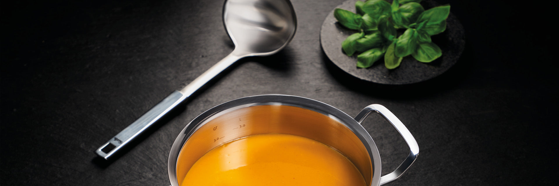 Induction pots are particularly energy-efficient and sustainable thanks to how they work: Induction stoves use copper-wire coils to create electromagnetic fields. The magnetic base of the cookware converts these fields into heat. Compared to traditional electric or glass-ceramic stovetops, induction heats up much faster. There’s no long preheating time-saving you both time and valuable energy. Fissler’s induction pots feature specially designed bases that are optimized for use on induction cooktops.