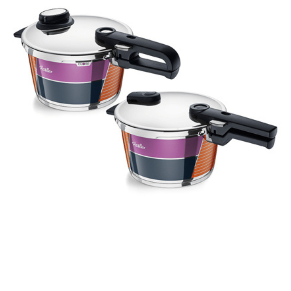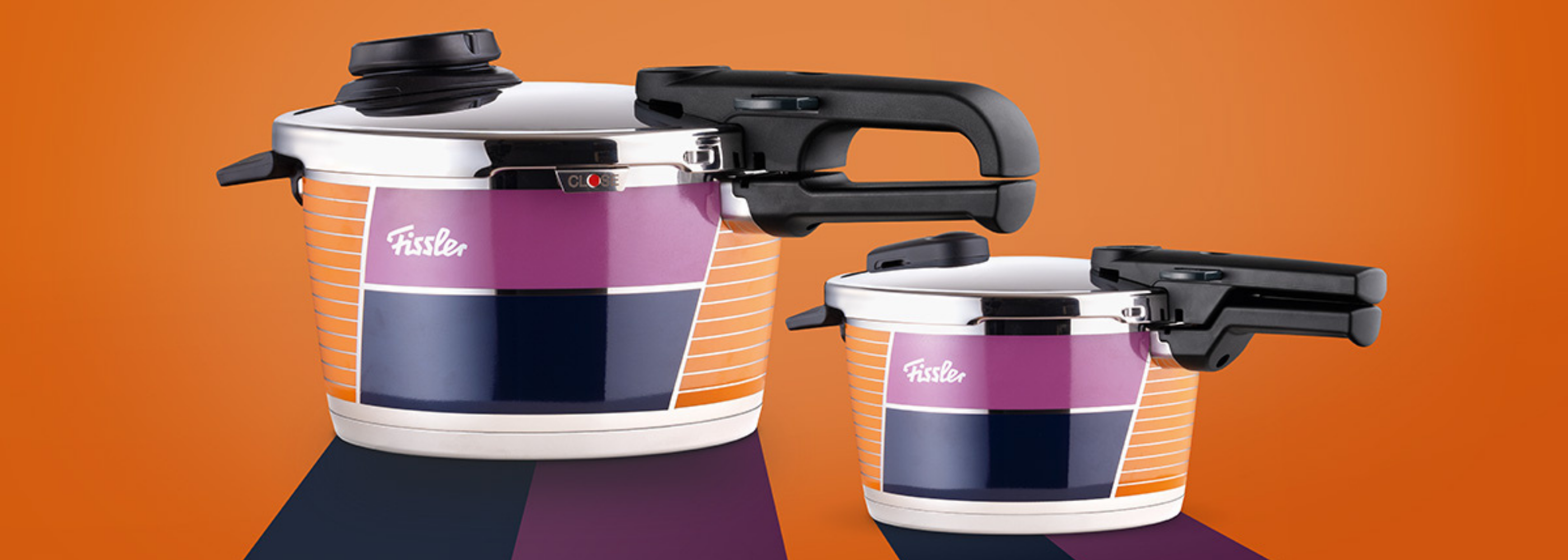 70 years of pressure cooking: Fissler celebrates the invention of the safe pressure cooker with two exclusive anniversary editions. The design of the Vitavit® and Vitaquick® Anniversary series is inspired by the fashion and colours of modern art from the 1950s. The pressure cookers shine in the “color blocking” design that characterized this era.
