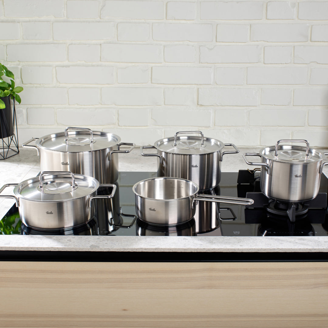 The Fissler Pure Collection caters to aspiring home chefs and families seeking durable Fissler quality, proudly 'Made in Germany’ at an accessible price point. Crafted sustainably using up to 90% recycled 18/10 stainless steel, the Fissler PURE Collection stands as a reliable companion for every day kitchen needs. Designed for versatility, the Fissler Pure Collection’s frying pan is perfect for achieving a crispy, low-fat finish when searing meats, vegetables, and seafood. Its body features a long handle for a safe hold, an extra-high rim, and a generously sized frying surface for effortless, mess-free stirring and turning. The rivet-free construction prevents food residue from sticking to that area, making clean-up a breeze. The Fissler Pure Collection's Superthermic base ensures uniform heat distribution on all stovetops, including induction. Oven-safe up to 450°F (and 350 °F with glass lids), the frying pans may be easily cleaned in the dishwasher for added convenience.